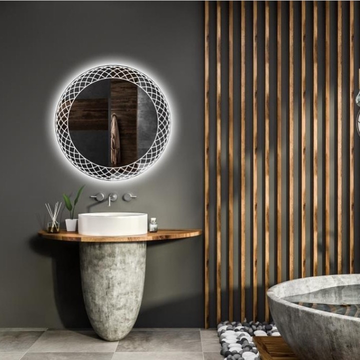 آینه بک لایت آتریکس MD61 در قطر 60 سانتی متر تولید شده و لبه های آینه جهت جبوگیری از آسیب به دست هنگام تمیز نمودن یا جابجایی کاملا ابزار خورده میباشد